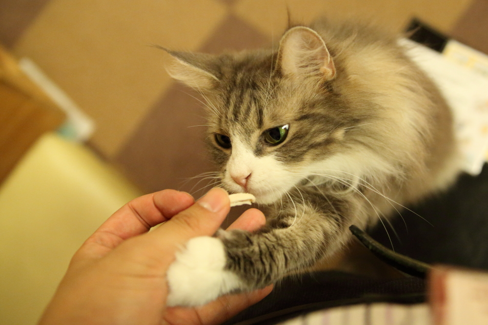 寒くなりカーペットの上も少し冷たいからか膝の上等に居座ったりしやすいね